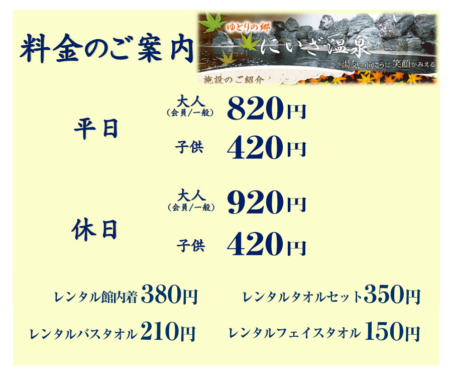 ◆ お帰りの際、1階フロントへ精算バンド・タオル・館内着をご返却ください。